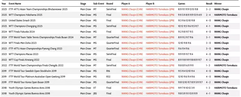 据国际乒联官网统计,王楚钦与张本智和在国际赛场共交手16次,王楚钦以13胜3负占据绝对优势。