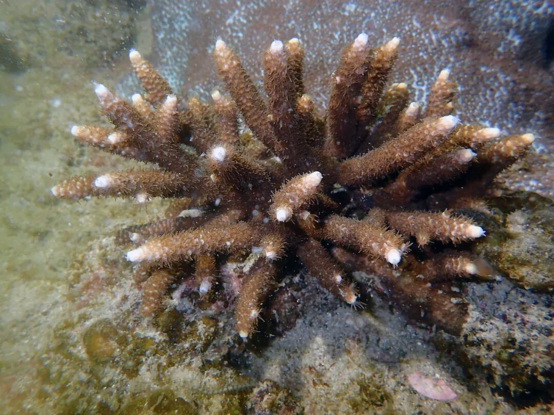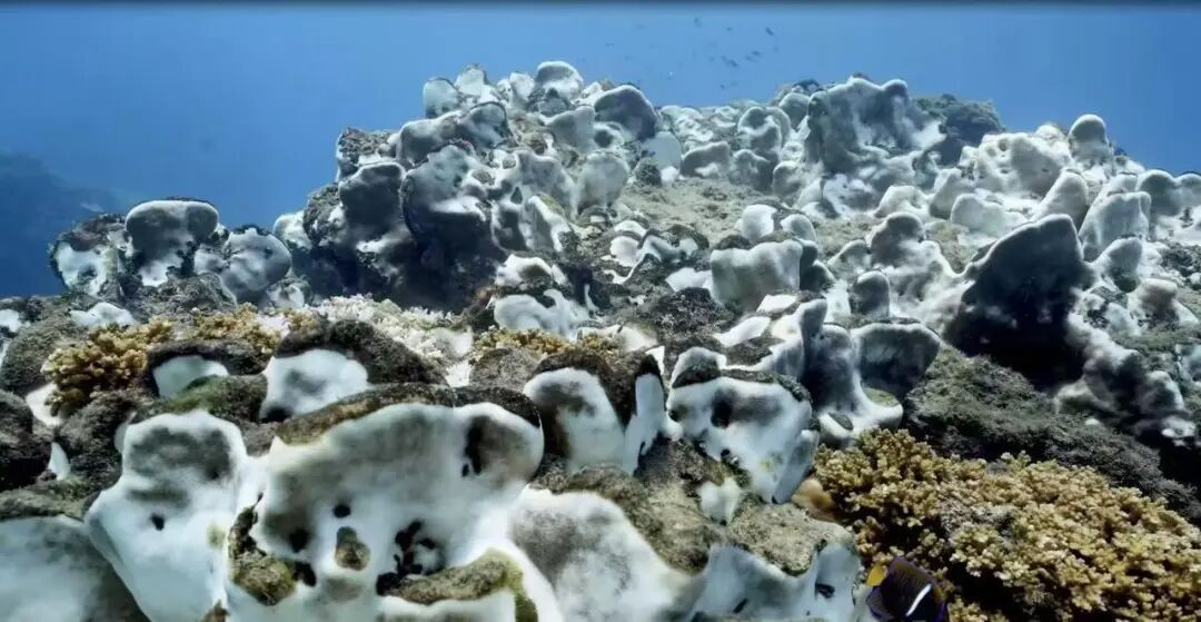白化后的珊瑚。图源央视新闻